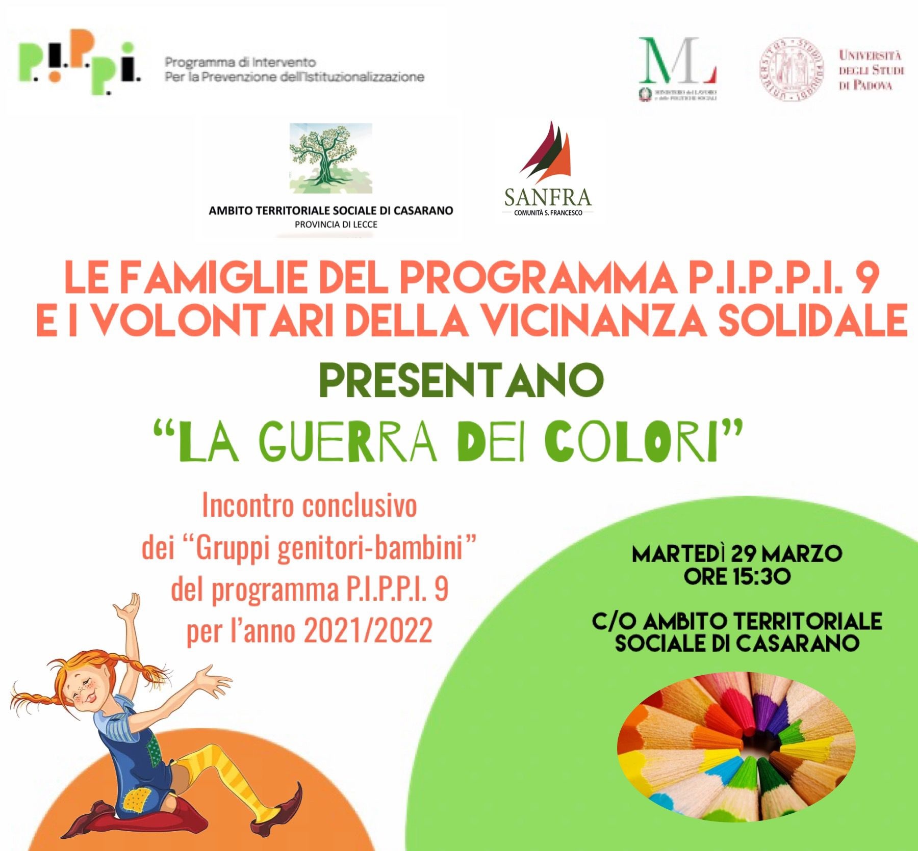 Oggi presso l’Ambito Territoriale Sociale di Casarano si terrà l’incontro conclusivo dei “Gruppi genitori -bambini” del Programma P I.P.P.I. 9 per l’anno 2021/2022.