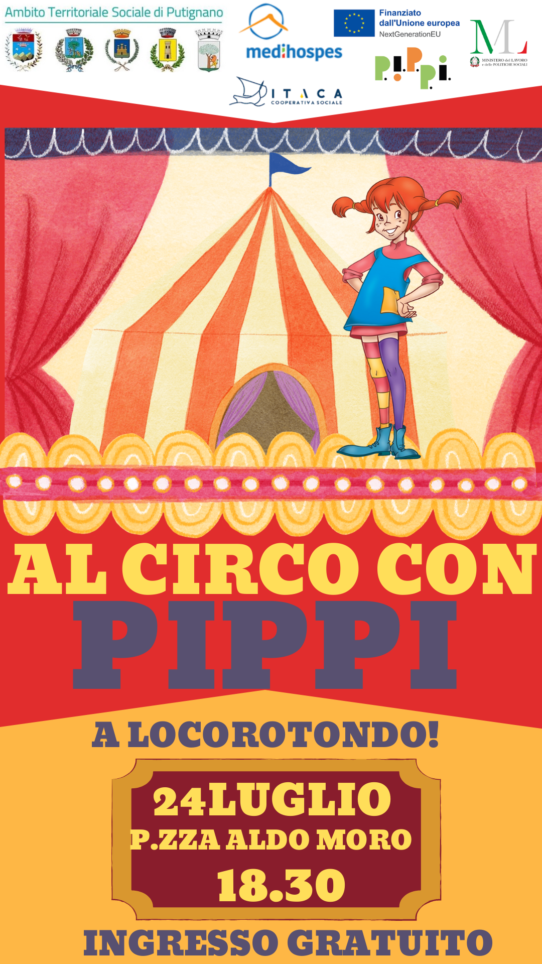 L’Ambito Territoriale Putignano, in collaborazione con l’Associazione Temporanea di Impresa Cooperativa Medihospes-Cooperativa Itaca, in qualità di gestore affidataria del “Centro Servizi per le Famiglie – mediazione familiare” dell’Ambito di Putignano, nel contesto del Programma P.I.P.P.I. (Programma di intervento per la prevenzione dell’istituzionalizzazione), al fine dell’inclusione e della prevenzione delle situazioni di marginalità, invita grandi e piccini all’evento “AL CIRCO CON PIPPI”.